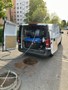 Um sicherzustellen, dass die Leitungen kontinuierlich eine optimale Transportkapazität aufweisen oder um akute Probleme zu lösen, kann eine Hochdruckspülung erforderlich sein. Dabei wird ein Hochdruckschlauch entweder durch einen Abwasserschacht oder eine Reinigungsöffnung direkt in die Abwasserleitung eingeführt und an die Ursache der Verstopfung geführt. Mittels hohen Wasserdrucks werden Feststoffe, Fett- und Fäkalschlämme sowie Ablagerungen aus den Leitungen gespült, wodurch Abflussbehinderungen entfernt werden.